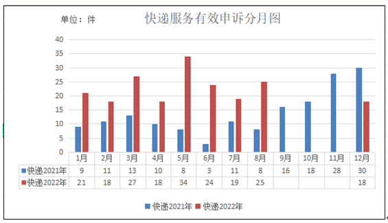 消费者对365英超_bt365娱乐官网_365bet官网平台网址服务问题申诉环比增长或者下降的情况:延误环比减少5%,收寄服务环比增长100%,损毁环比下降100%;丢失短少、投递服务、违规收费、其他均保持不变。